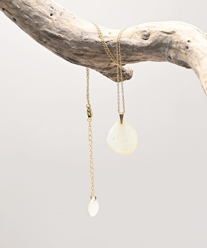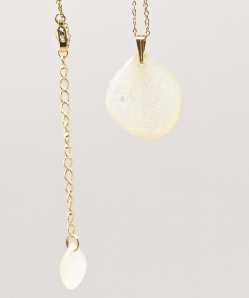 Un second pétale, délicatement placé à l’extrémité de la chaînette d’extension, vous permet de rallonger le collier ou de le porter dans le dos, pour un effet subtil et élégant. Chaque pièce est faite main dans mon atelier, pour un bijou léger, poétique et unique, qui apporte une touche végétale raffinée à toutes vos tenues.