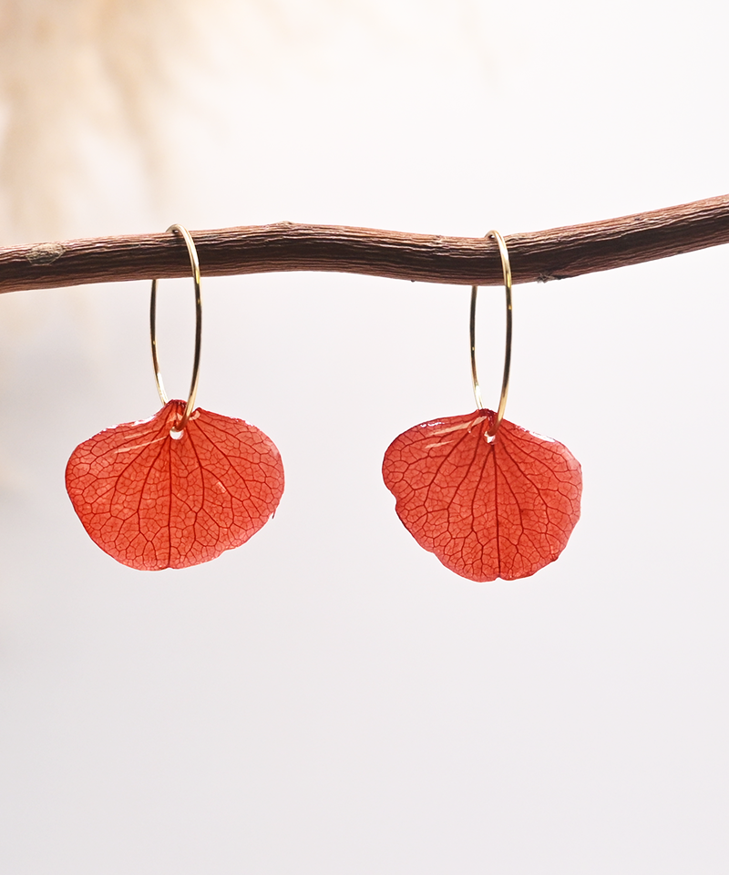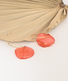 Laissez-vous séduire par ces délicates petites créoles qui mettent en valeur un véritable pétale d’hortensia. Chaque pétale est soigneusement sélectionné, puis protégé dans une fine couche de résine transparente qui fige sa beauté naturelle tout en dévoilant ses nervures uniques.